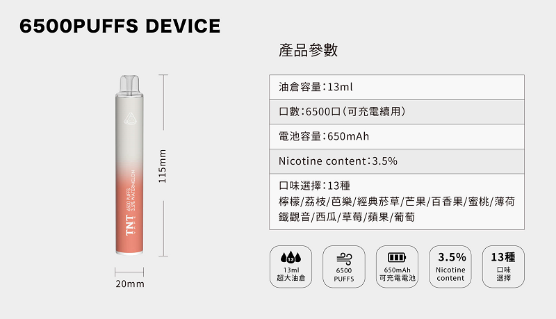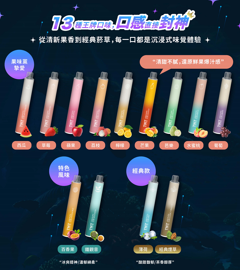 13種王牌口味|TNT Vape 6500口電子煙沉浸式味覺盛宴